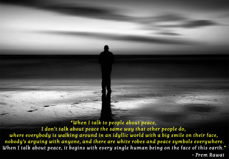 When I talk to people about peace, I don’t talk about peace the same way that other people do, where everybody is walking around in an idyllic world with a big smile on their face, nobody’s arguing with anyone, and there are white robes and peace symbols everywhere. When I talk about peace, it begins with every single human being on the face of this earth.