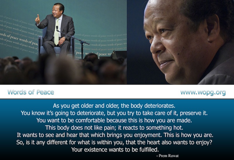 As you get older and older, the body deteriorates. You know it's going to deteriorate, but you try to take care of it, preserve it. You want to be comfortable because this is how you are made. This body does not like pain; it reacts to something hot. It wants to see and hear that which brings you enjoyment. This is how you are. So, is it any different for what is within you, that the heart also wants to enjoy? Your existence wants to be fulfilled.