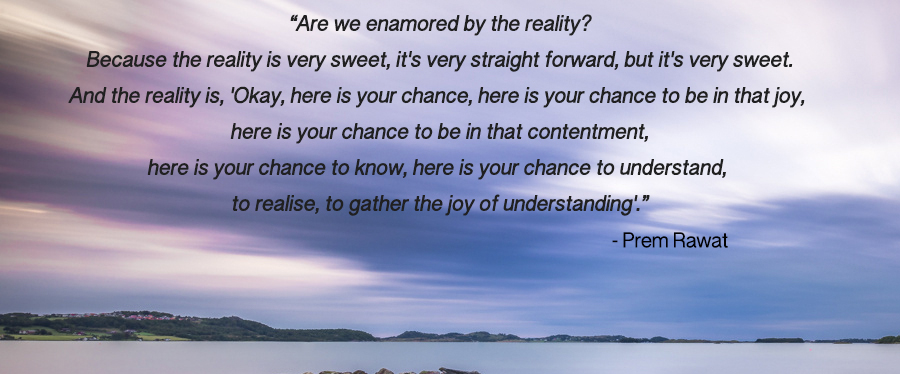 Are we enamored by the reality? Because the reality is very sweet, it's very straight forward, but it's very sweet. And the reality is, 'Okay, here is your chance, here is your chance to be in that joy, here is your chance to be in that contentment, here is your chance to know, here is your chance to understand, to realise, to gather the joy of understanding'.