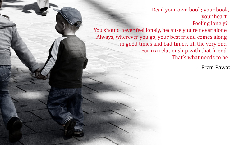 Read your own book; your book, your heart. Feeling lonely? You should never feel lonely, because you’re never alone. Always, wherever you go, your best friend comes along, in good times and bad times, till the very end. Form a relationship with that friend. That’s what needs to be.