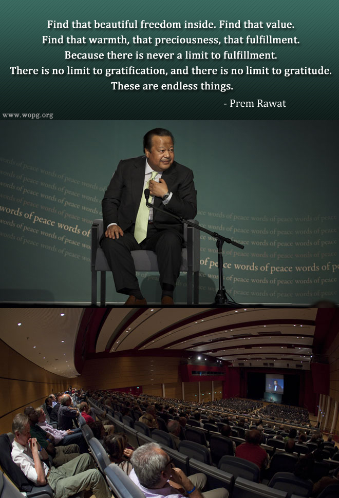Find that beautiful freedom inside. Find that value. Find that warmth, that preciousness, that fulfillment. Because there is never a limit to fulfillment. There is no limit to gratification, and there is no limit to gratitude. These are endless things.