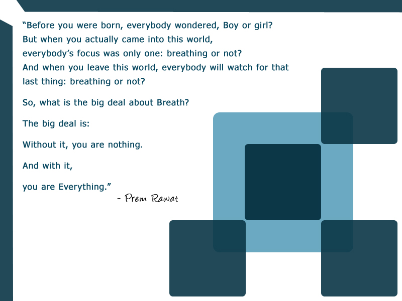 Before you were born, everybody wondered, Boy or girl? But when you actually came into this world, everybody’s focus was only one: breathing or not? And when you leave this world, everybody will watch for that last thing: breathing or not? So, what is the big deal about Breath? The big deal is: Without it, you are nothing. And with it, you are Everything.