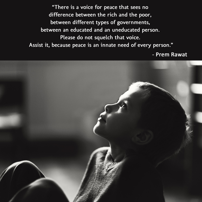 There is a voice for peace that sees no difference between the rich and the poor, between different types of governments, between an educated and an uneducated person. Please do not squelch that voice. Assist it, because peace is an innate need of every person.